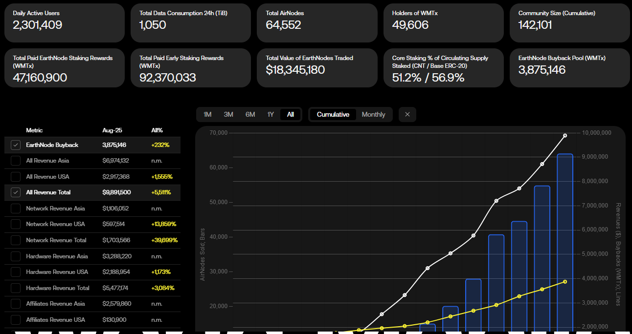 The project surpassed $9.8 million in total revenue in August, which represents revenue distributed across AirNode operators, stakers and other contributors.