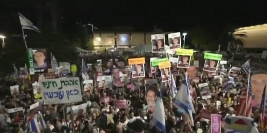 President Trump departed for the Middle East ahead of the release of 20 living hostages held in Gaza. NBC News’ chief foreign correspondent, Richard Engel, reports from Tel Aviv on the Israeli reaction to the ceasefire deal.Oct. 12, 2025