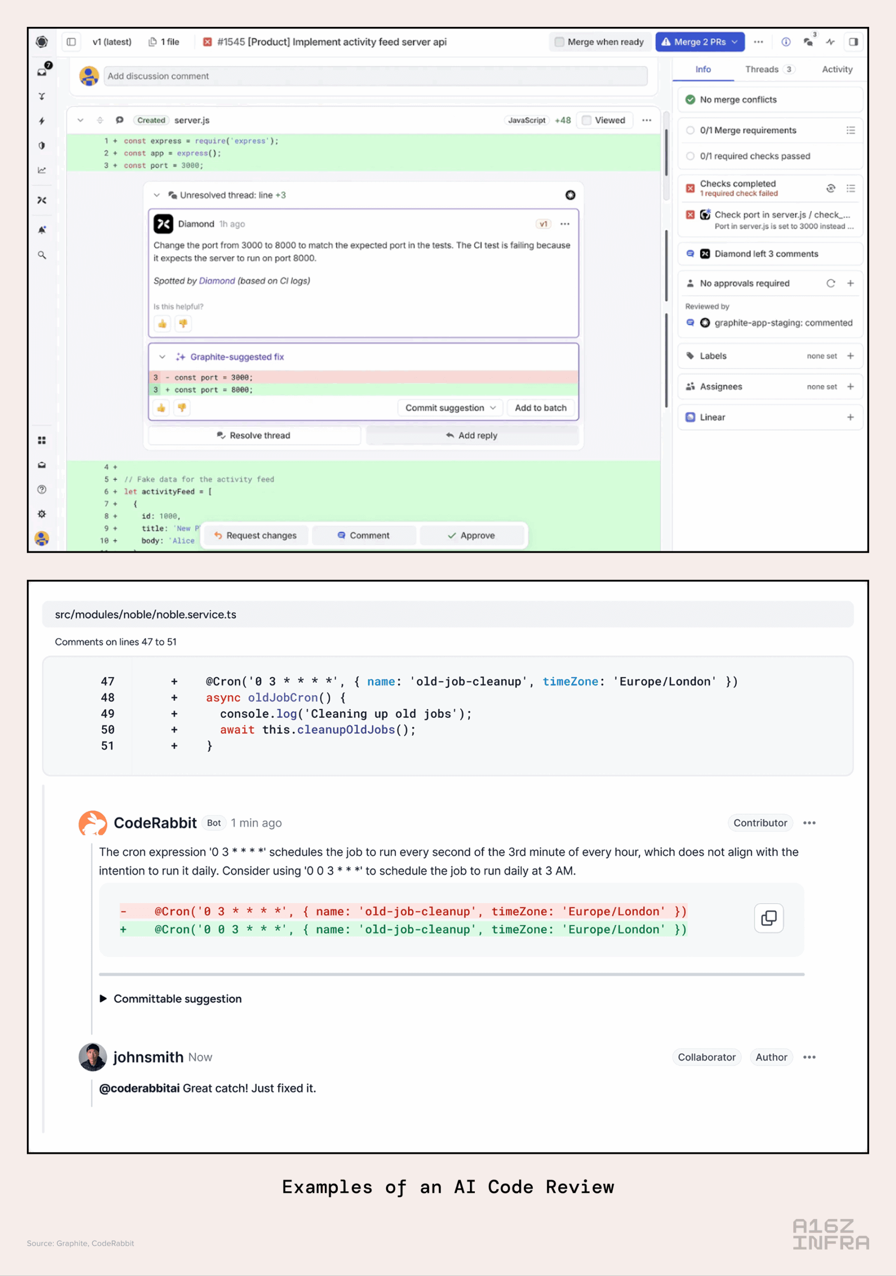 An image showing examples of an AI code review