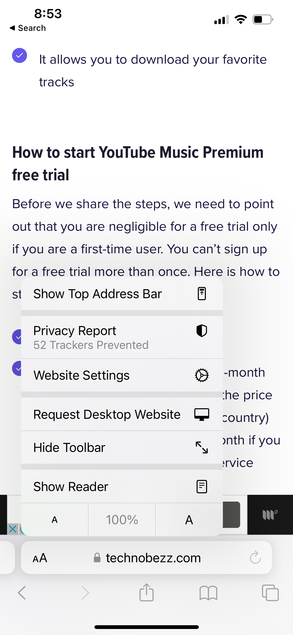 Tap the “AA” icon in the address bar
