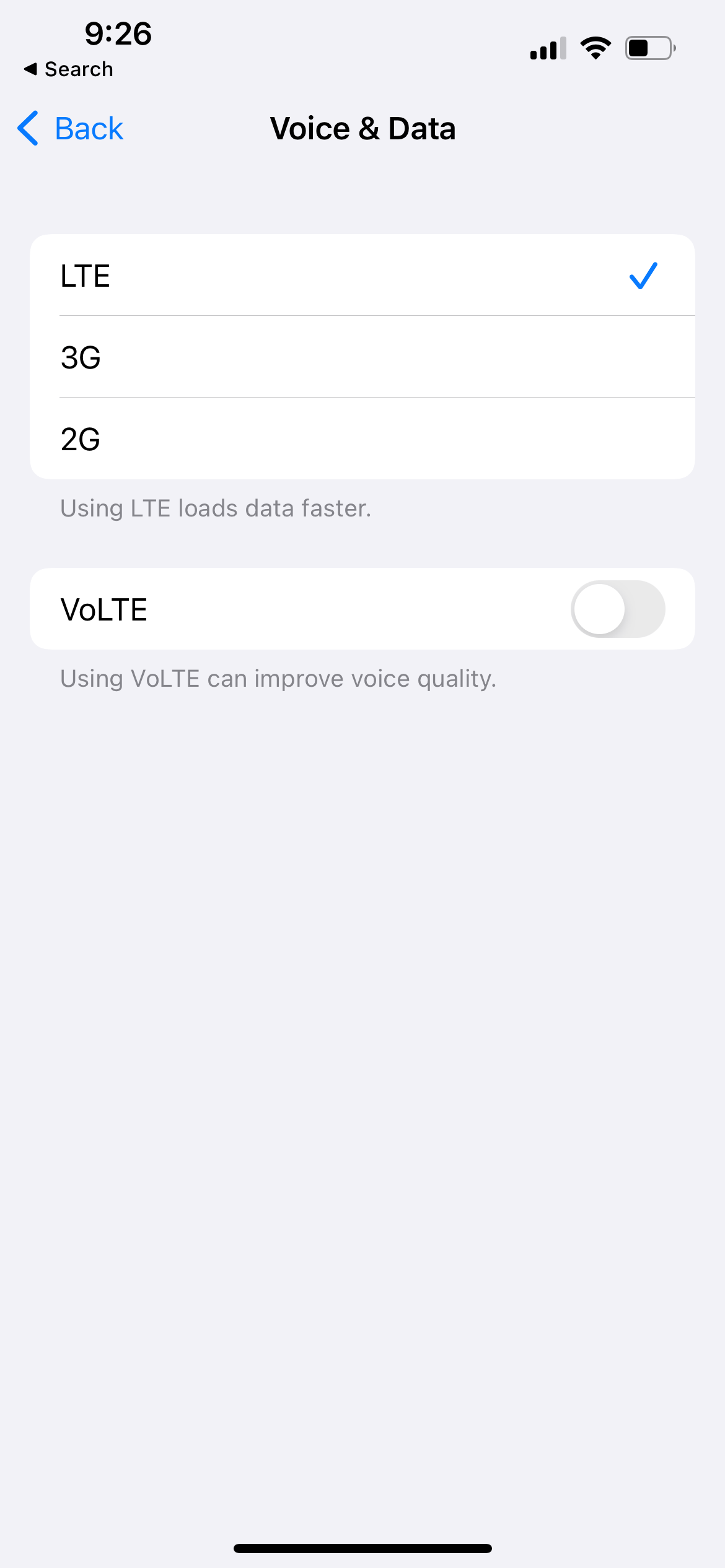 Select 4G/LTE or 5G for faster speeds