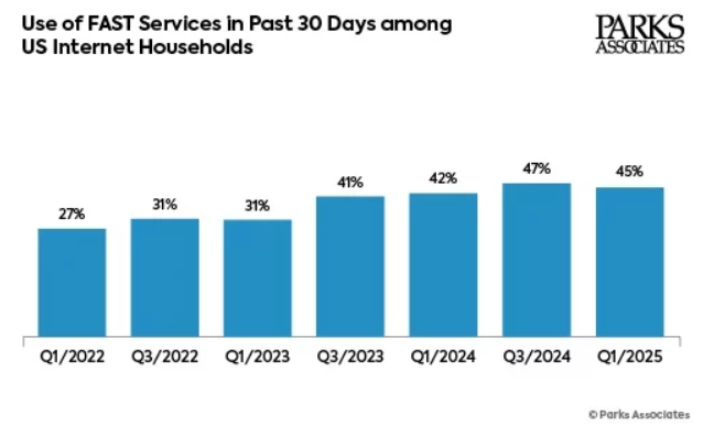 Parks Associates reports that 89 per cent of US internet households subscribe to at least one streaming service and 45 per cent watch free ad-based services.
