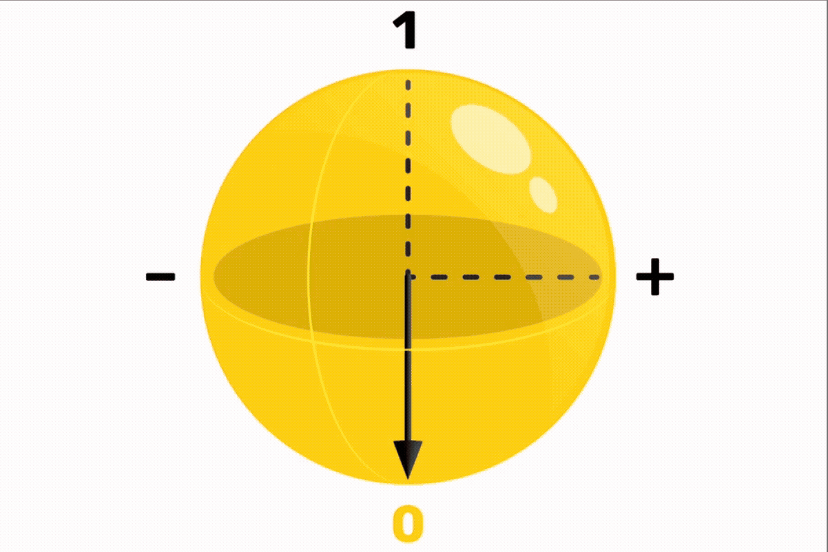 A qubit can be in a superposition between an infinite number of spots on the sphere between 0 and 1. This compares to a classical computing bit that can only be a 0 or a 1. A qubit can be in a simultaneous state of both 0 and 1 at the same time with superposition.