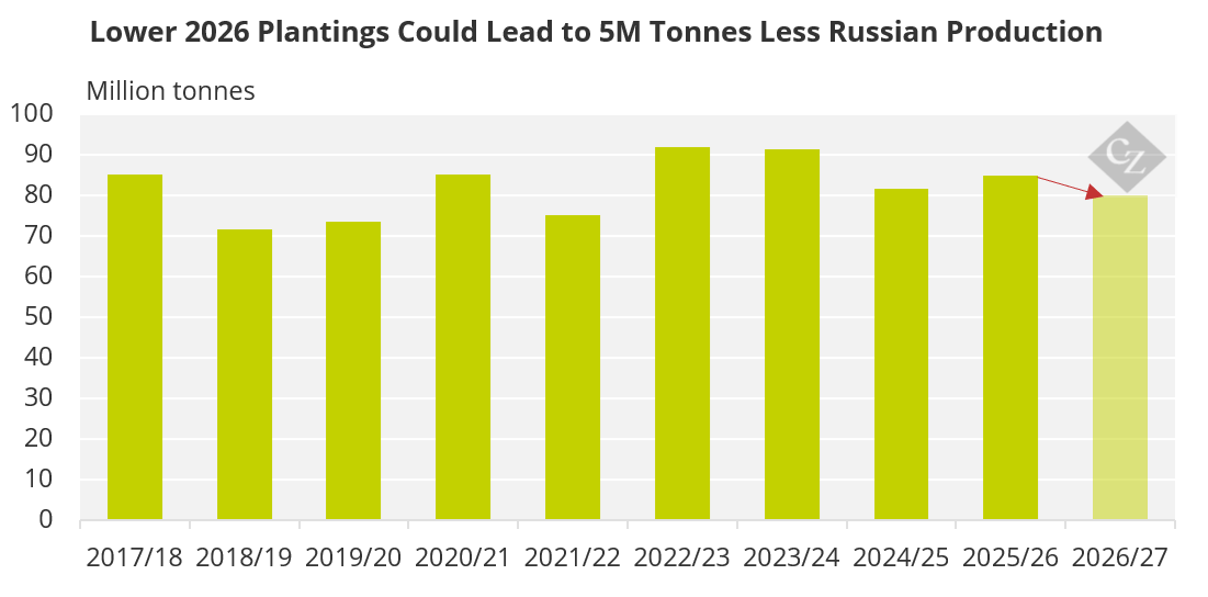 Even the recent report from Russia, citing a 6% reduction in 2026 wheat plantings did nothing to spark any buying interest. This comment alone could wipe 5 million tonnes off supply next year.