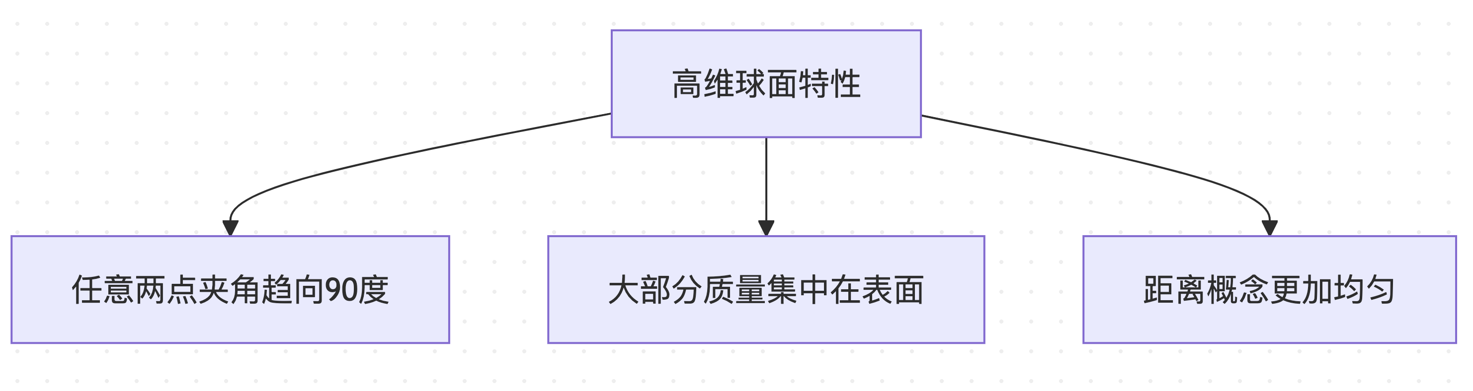 In high-dimensional spaces (such as 4096-dimensional vocabulary space), spherical distributions have counterintuitive properties:
