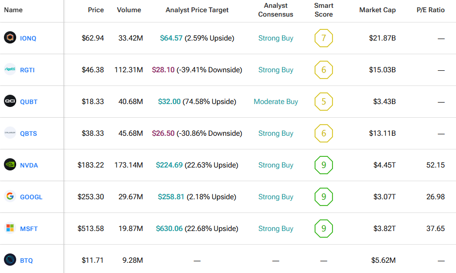 We used TipRanks’ Comparison Tool to line up leading quantum stocks with the tickers mentioned in this piece. It’s a quick way to see how they stack up and where the field could be heading.
