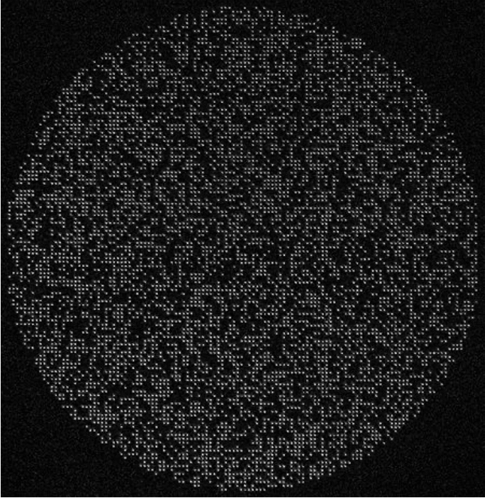 In order to “trap” the cesium atoms shown above, the team split a laser beam into 12,000 optical “tweezers,” which were used to trap 6,100 atoms inside of a vacuum chamber.