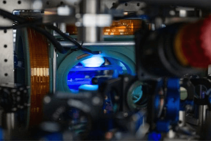 The advantage of neutral atoms is that they are more resilient to thermal fluctuations, as long as they are maintained in a high-vacuum chamber, like the one shown in the image below.