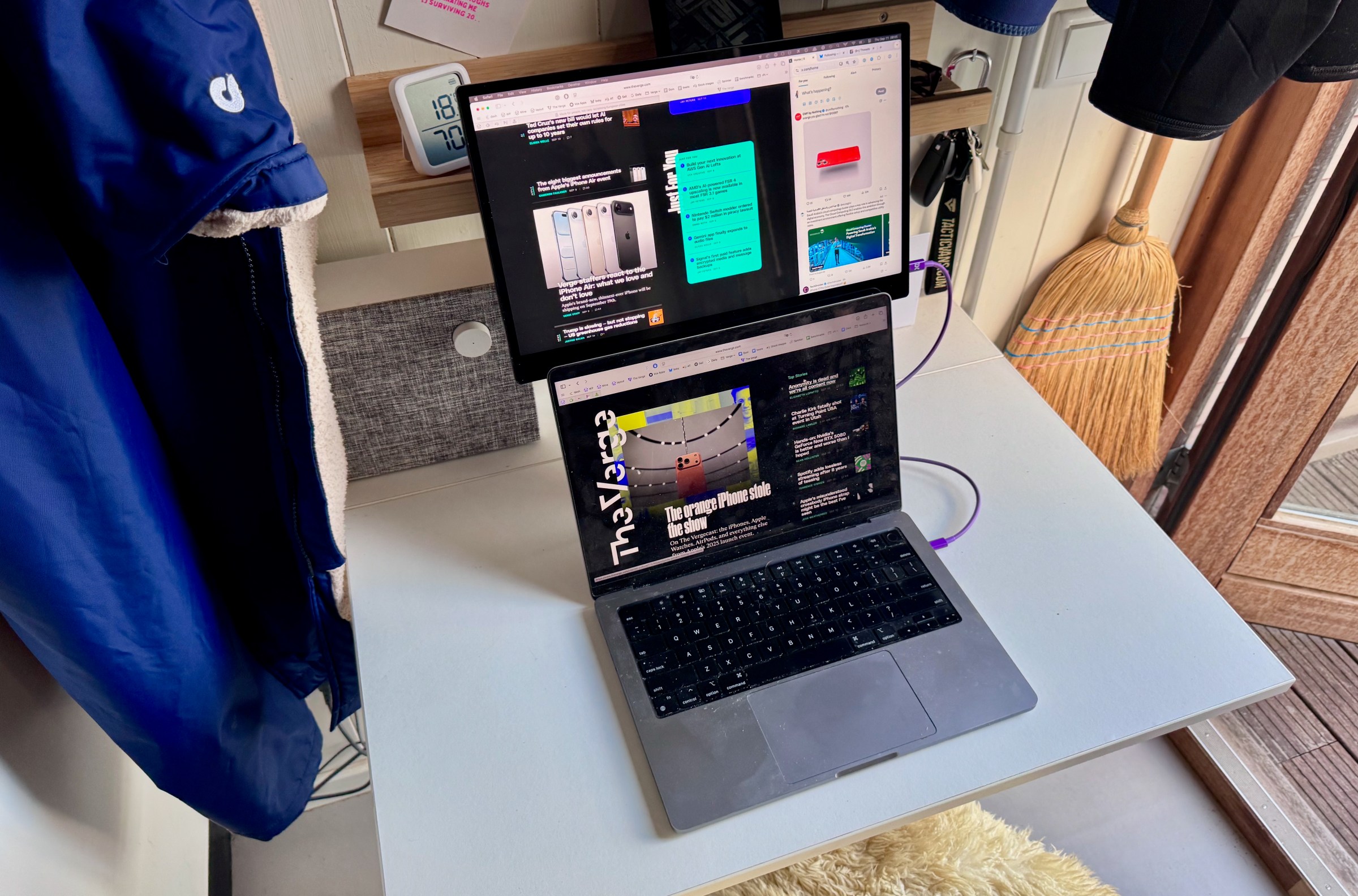 See, I spend a lot of time working from my van, which makes me miss my dual-monitor setup at home — it’s hard to adapt to a single 14-inch laptop display after regularly working on a pair of 27-inch monitors. Espresso lets me approximate that setup in tight spaces with a display that’s thinner and much lighter than the Mac or Windows laptop it enhances. And it connects over a single USB-C cable.