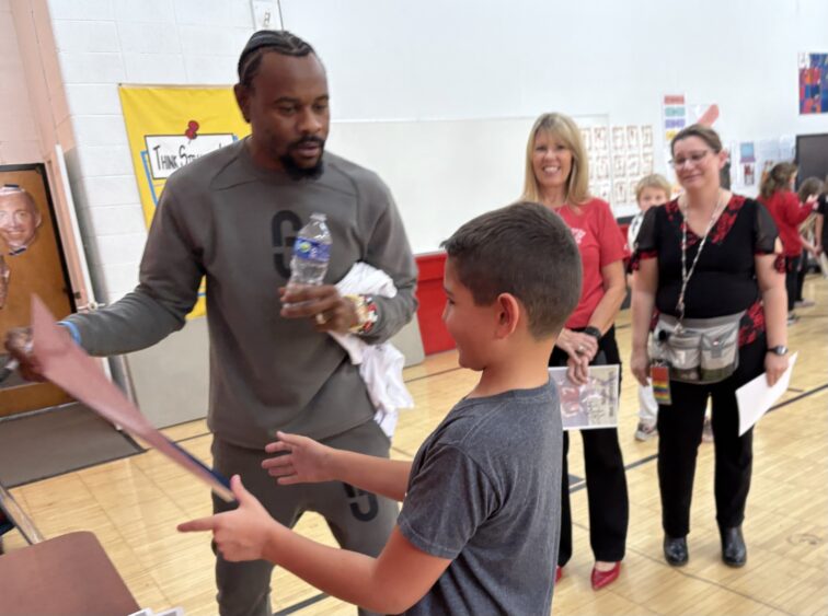 Former Buckeyes and NFL receiver Ted Ginn Jr. was at New Philadelphia’s West Elementary Thursday to speak to the kids, lead them in exercises, and sign autographs.