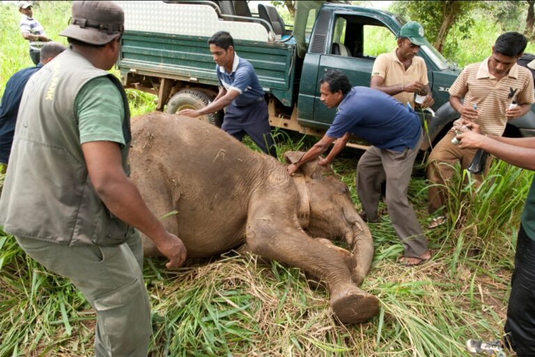 In August 2011, the Department of Wildlife Conservation (DWC) officers at Udawalawe intercepted an operation where an illegally captured young elephant calf was being prepared for transport out of the park. The elephant had been tied and fitted with a seatbelt-like strap to secure it inside the vehicle. Image courtesy of Vijitha Perera.