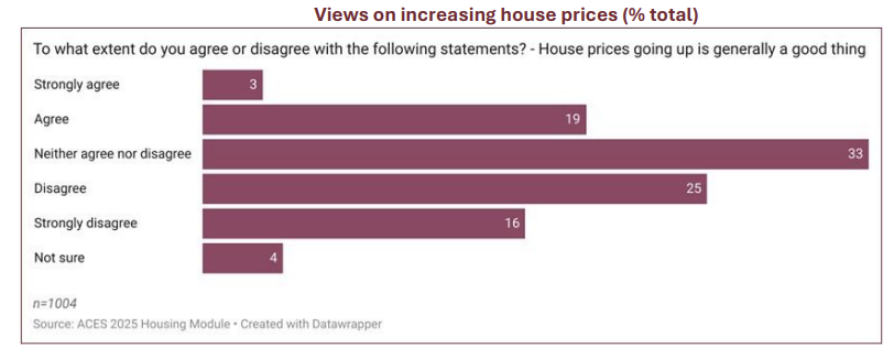 Only 22% of respondents viewed rising house prices positively, while 41% frowned upon it.
