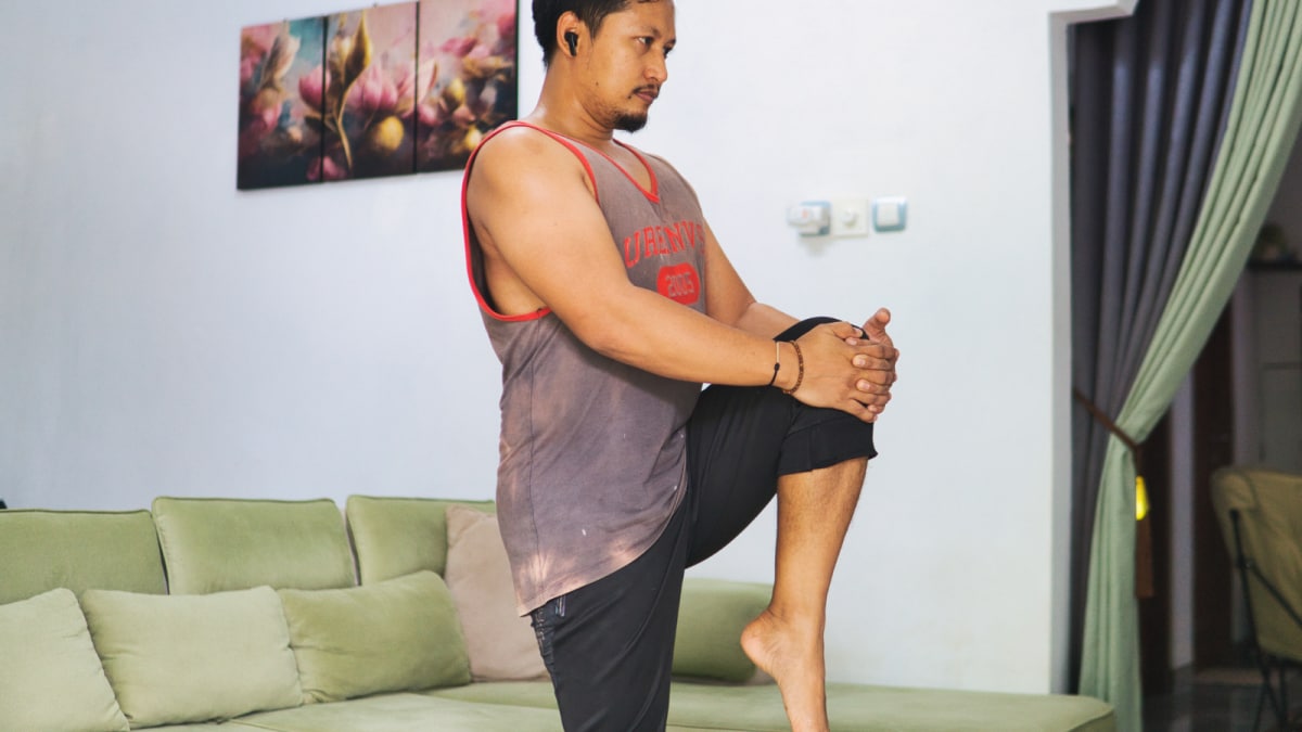 Step-ups on a chair- Use a stable chair for a safe step-up routine. Keep a steady pace and alternate legs. Step-ups not only raise your step count by 600 – 800 steps but also strengthen your legs and glutes. (Image-Canva)