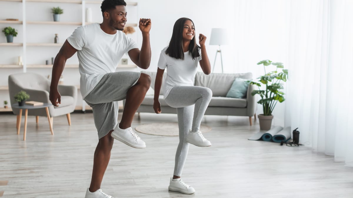 High knee marching- After warm-up, start strong with high knee marching or jogging in place. Pump your arms and stay light on your feet to increase your step count quickly. This 7-10 minute segment will add 1200-1500 steps. (Image-Canva)