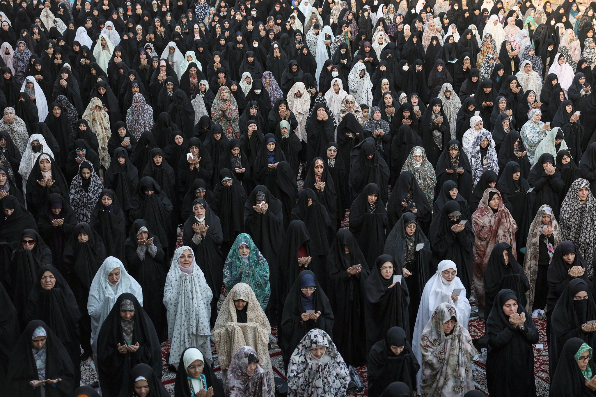 Iranian women perform a prayer for rainfall at the Saleh Shrine in Tehran on November 14, 2025, as the country suffers from severe water shortages. (AFP)