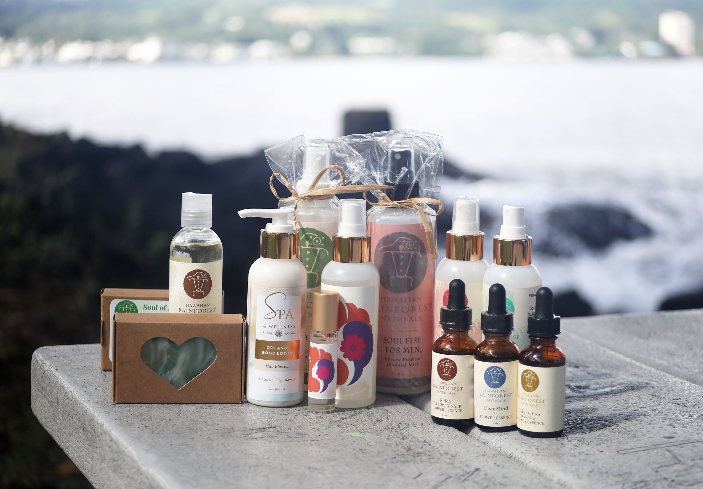 Hawaiian Rainforest Naturals products, including the Yellow Ginger, Ti and Banana flower essences (Kelsey Walling/Big Island Now)