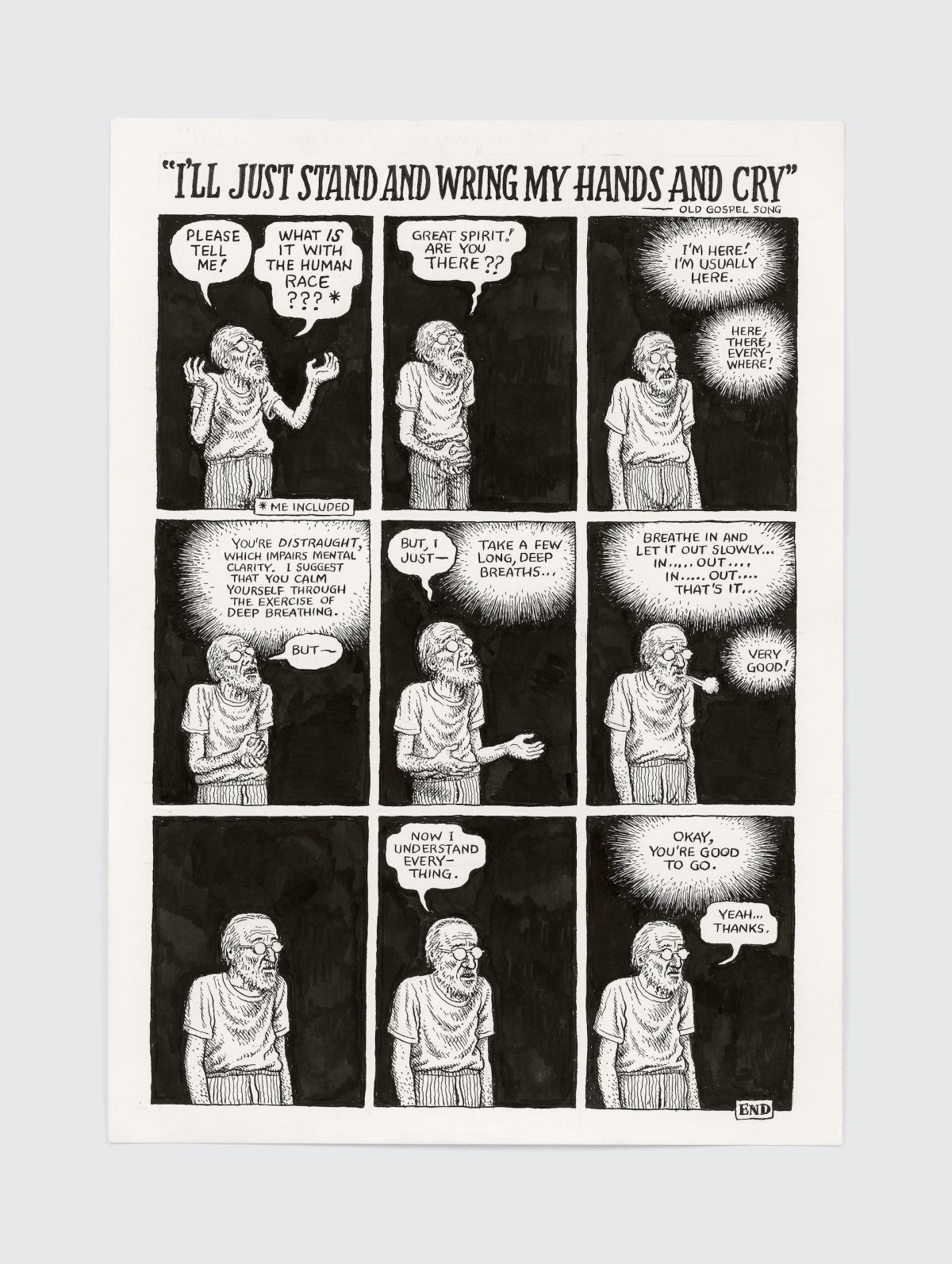 R. Crumb, “I’ll Just Stand and Wring My Hands and Cry” (2025) (© Robert Crumb, 2025, courtesy the artist, Paul Morris, and David Zwirner)