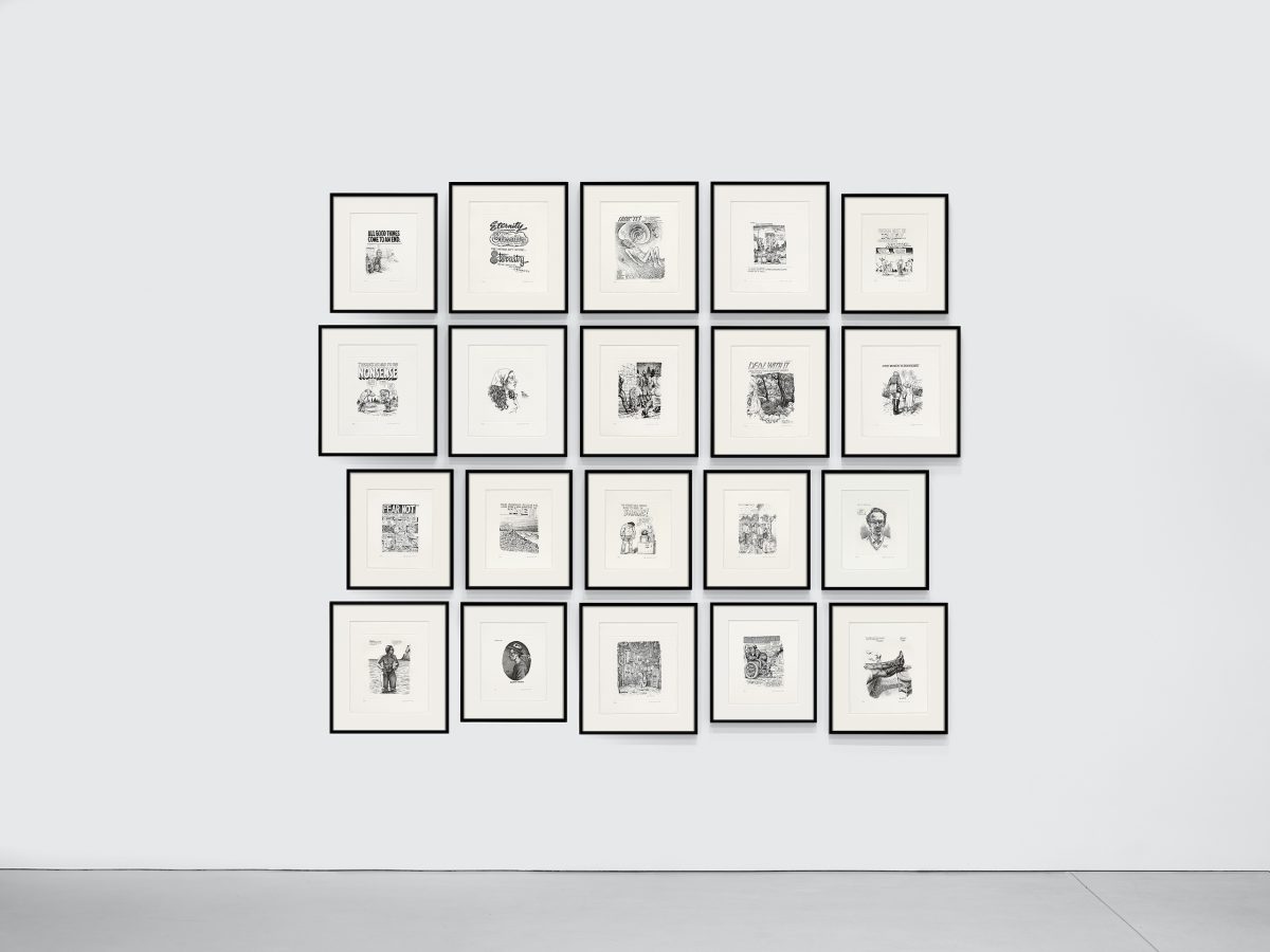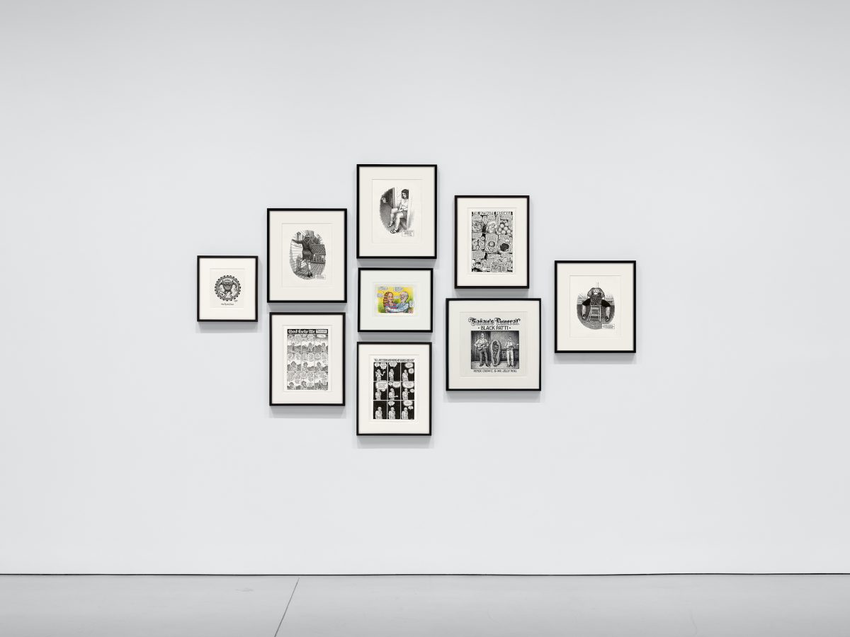 Installation view of R. Crumb: Tales of Paranoia at David Zwirner, Los Angeles (photo Angel Xotlanihua, courtesy David Zwirner)
