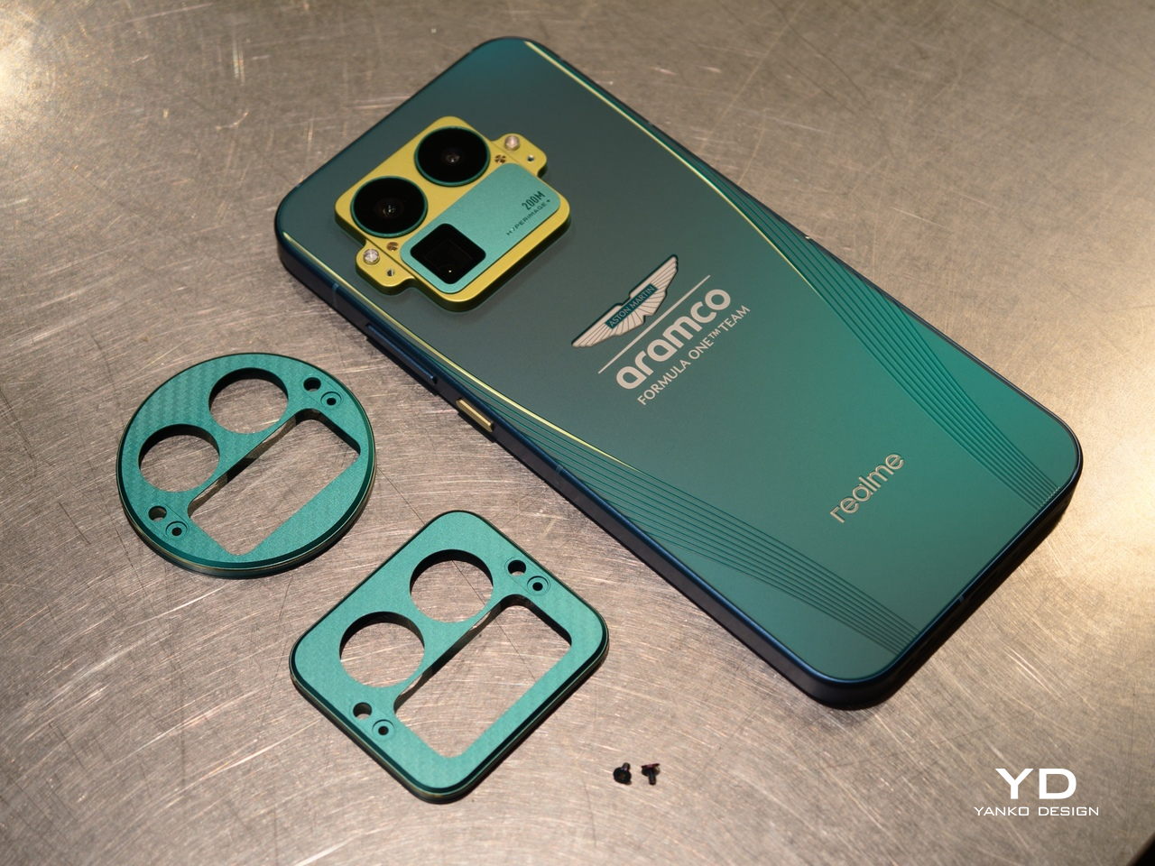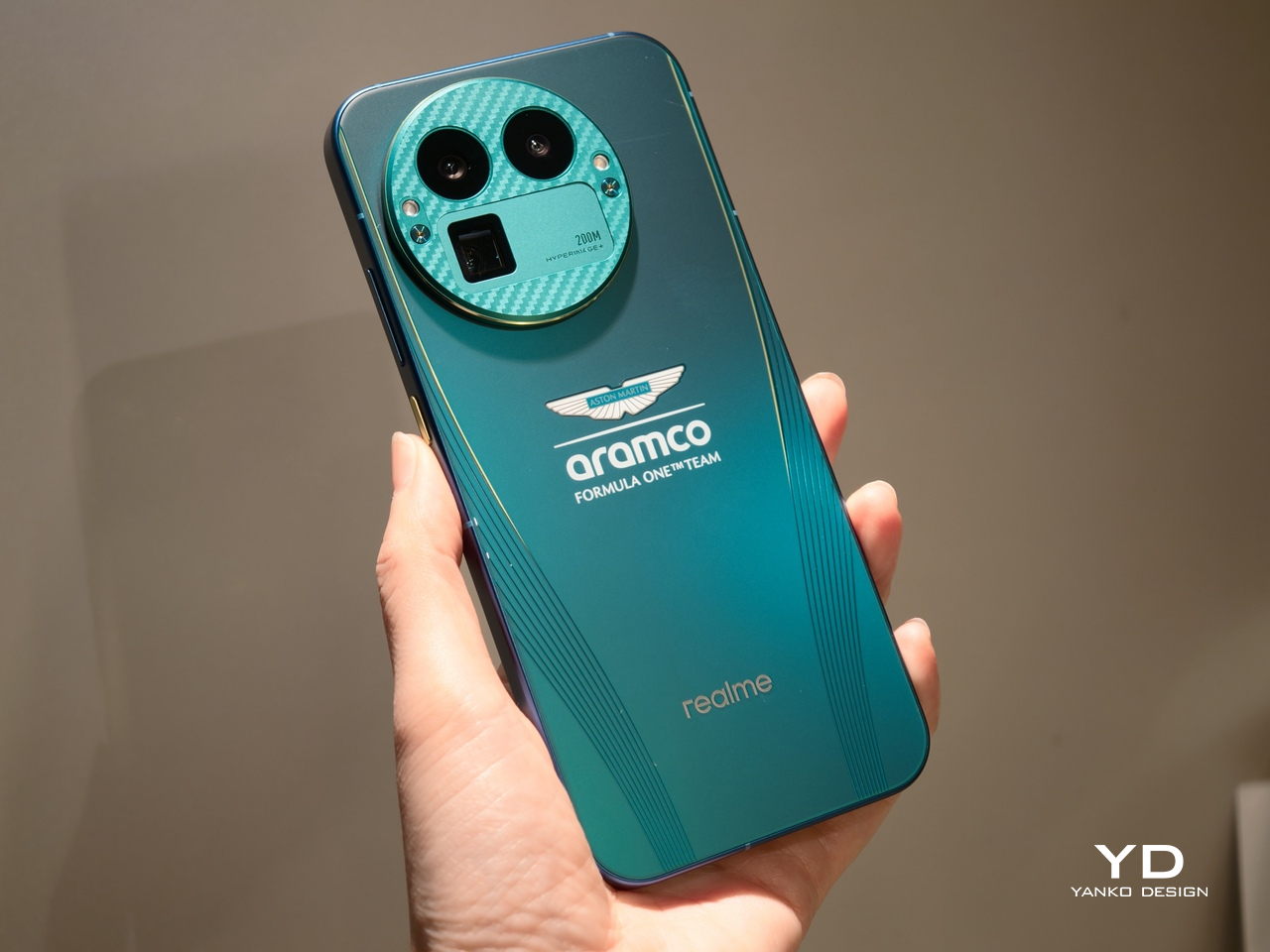 On top of these two color variants, Realme offers the Dream Edition as part of its three-year partnership with the Aston Martin Formula 1 team. This special version comes dressed in Aston Martin Green with yellow accents and an aerodynamic-inspired design. The phone arrives with a round camera decoration plate featuring a carbon fiber finish, which adds a motorsport texture that feels premium.