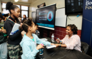 National Book Award Longlister Alicia D. Williams signing books for NYCHA residents at the Drew Hamilton Community Center in Harlem. © Christian Rodriguez.
