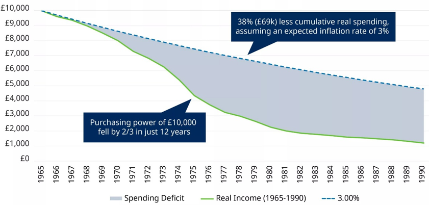In the 1970s, the UK experienced a bout of inflation which caused a significant erosion of purchasing power.