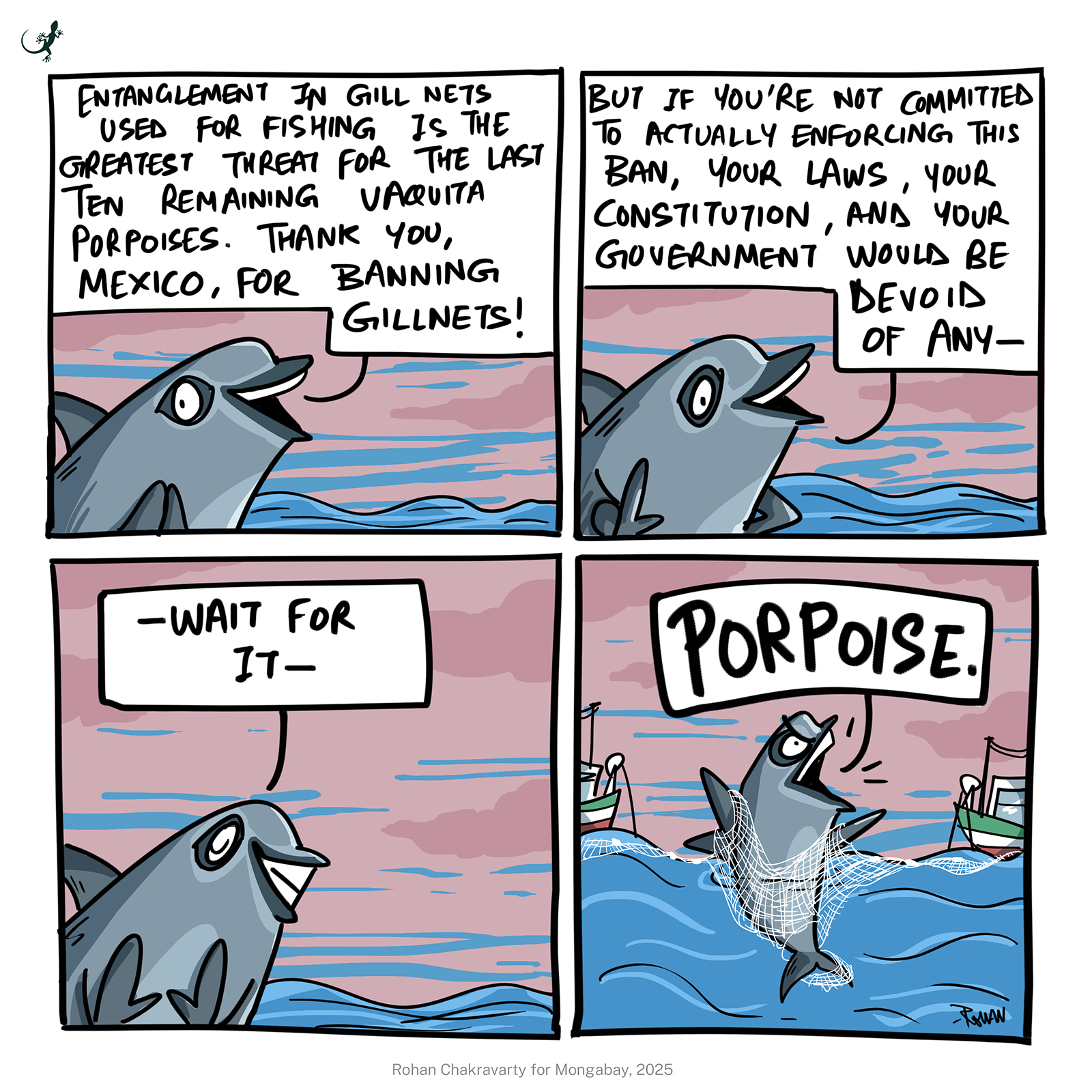 With an estimated less than 10 individuals alive, the vaquita porpoise of the Gulf of California is on the brink of extinction. Entanglement in gill nets used for fishing totoaba fish in the Sea of Cortez has been the prime threat to vaquitas, and while bans are already in place, the lack of enforcement leaves little hope for the critically endangered porpoises.