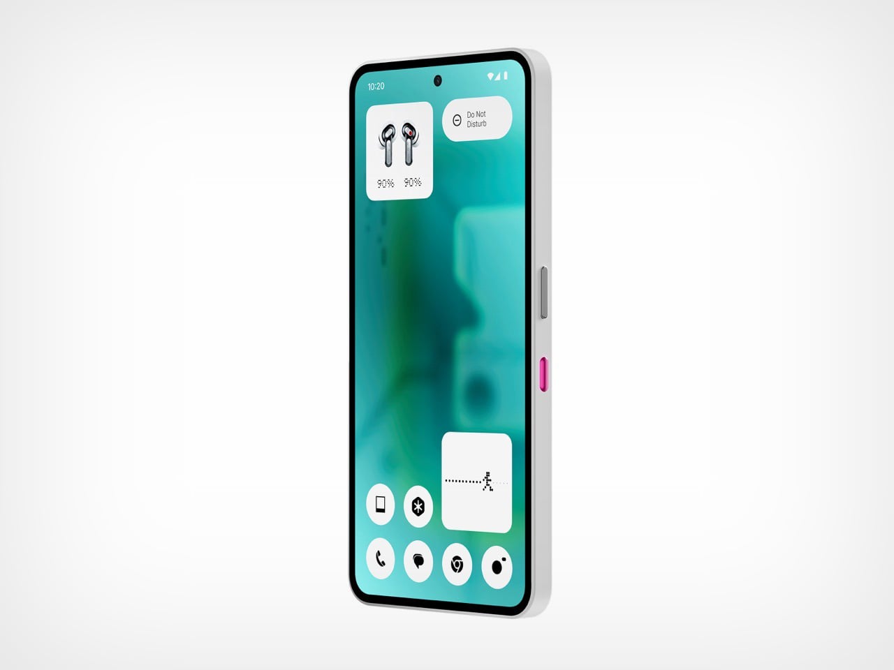 This cohesive design language extends to the front of the phone. The software experience includes an exclusive teal-gradient wallpaper and a custom lock-screen clock designed by community winner Jad Zock. The rounded, monochrome icons of Nothing OS float above the colorful background, tying the user interface directly to the physical hardware. This thoughtful integration ensures the device feels like a single, unified object. It’s a complete visual package that considers how the phone looks both when the screen is on and off, creating a more holistic product experience.