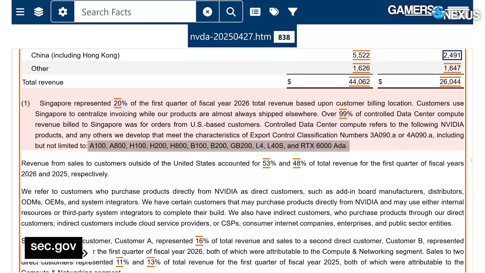 On July 4, Bloomberg reported that the Department of Commerce, which also did not reply to GamersNexus’ emails, was preparing new export controls on Malaysia and Thailand to reduce chip smuggling; interestingly, Singapore, which now comprises a significant portion of NVIDIA’s revenue, was not on that list despite being a known smuggling passthrough.