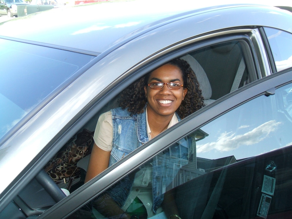 Bryanca Colvin of Amica Insurance is shown here with the first car she purchased.