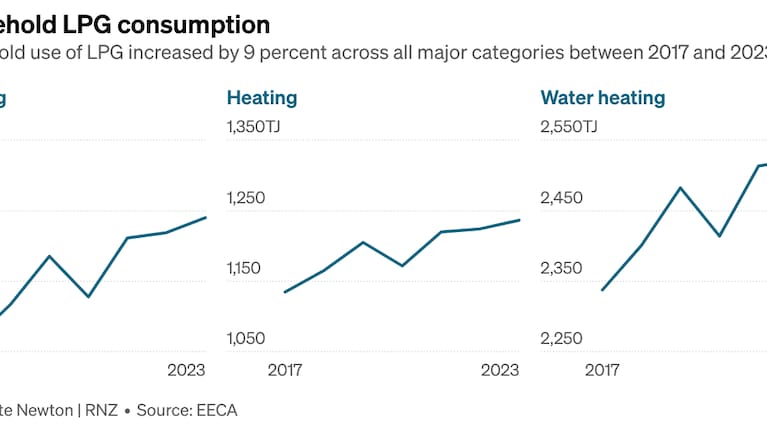 No public data existed on the number of households using LPG, but the overall volume of LPG powering household cooking appliances, gas water heaters and heating went up 9% between 2017-23, the most recent year of data.