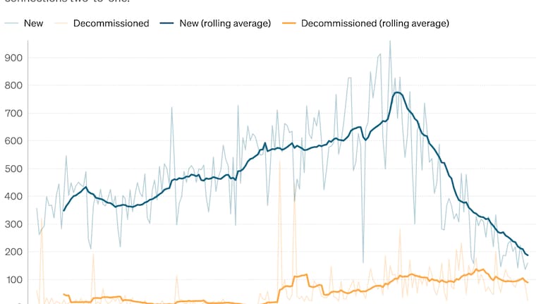 However, new connections are still proceeding – more than 2000 were added in the last year, at a rate of nearly 200 a month.