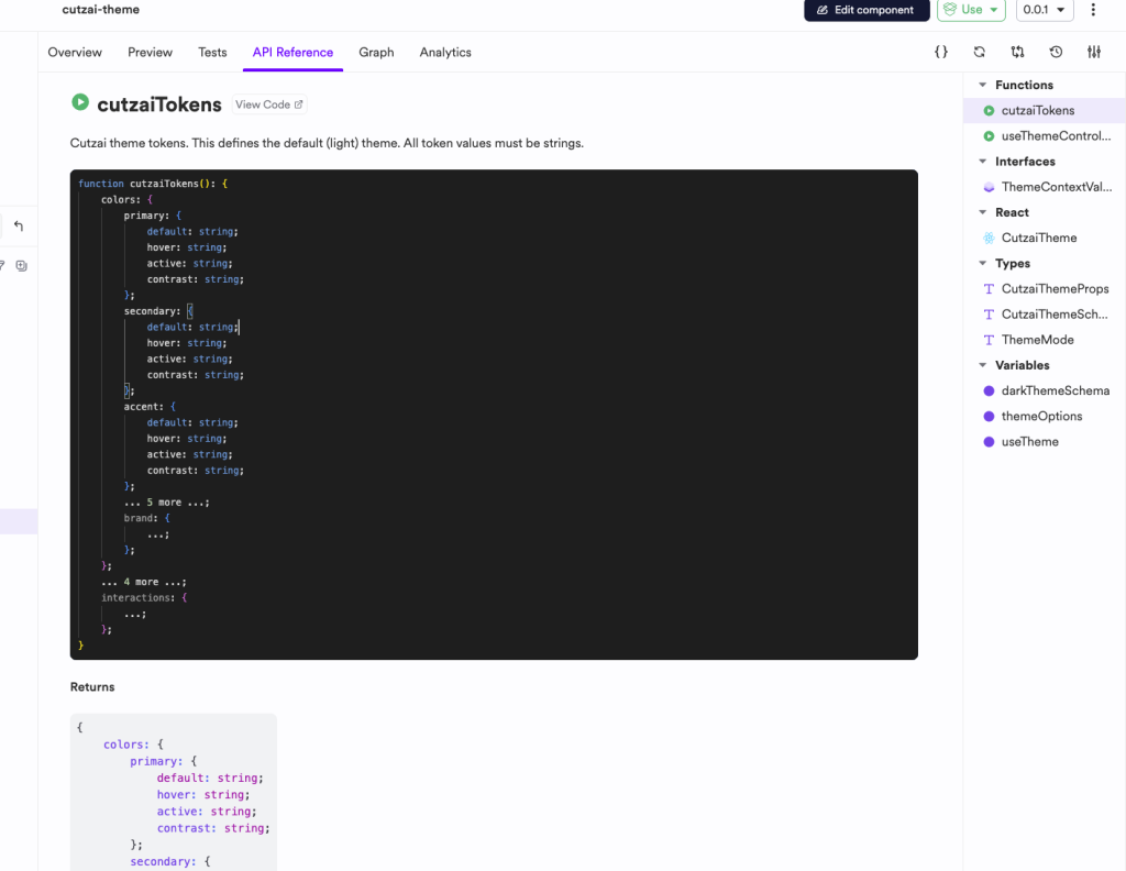 API Reference: A detailed breakdown of all the available theme tokens (colors, typography, spacing, etc.).