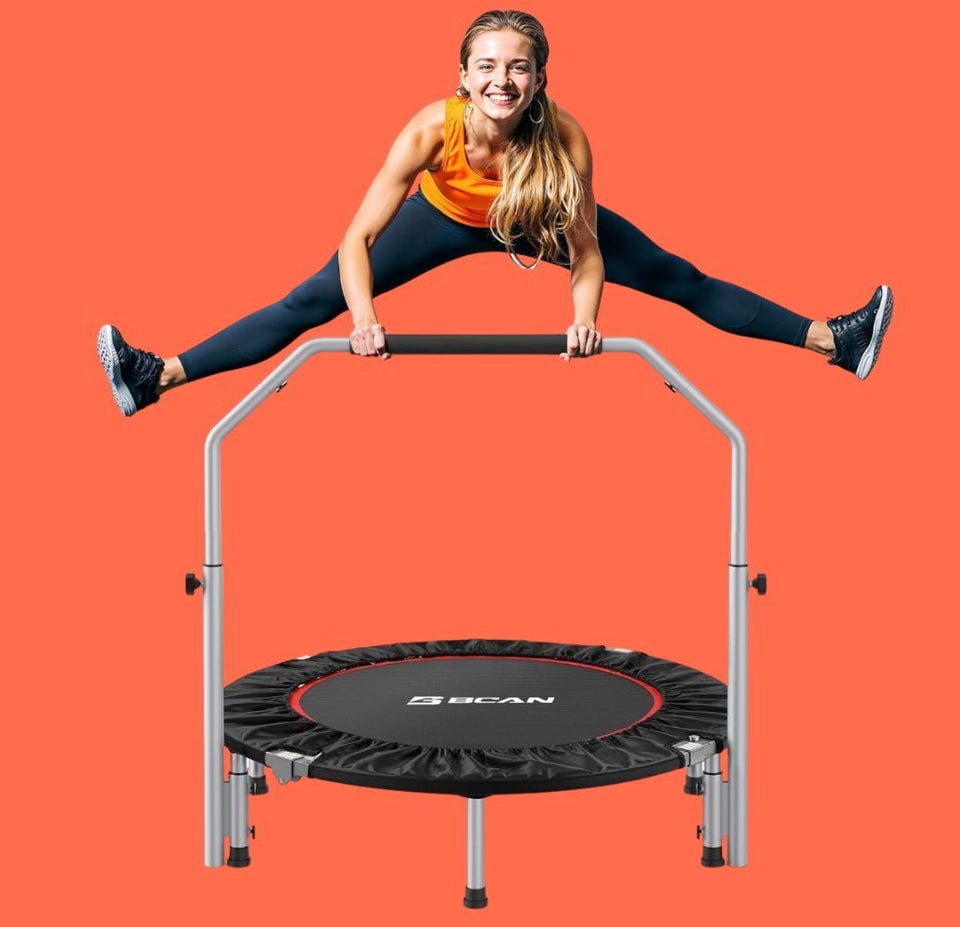Based on her guidance, we selected this foldable rebounder trampoline that has over 8,140 5-stars on Amazon and promises a safe jumping system composed of 32 closed springs and a powerful elastic surface. Available in 40- and 48-inch circumferences, this rebounder has a foldable base and a foldable handlebar that adjusts to four different heights.
