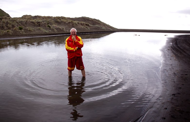 Sir Bob Harvey at Karekare Beach, is a veteran of the surf lifesaving club – and he wants other Aucklanders and their visitors to enjoy the city’s coastline just as much as he does. Photo: Dean Purcell/Supplied