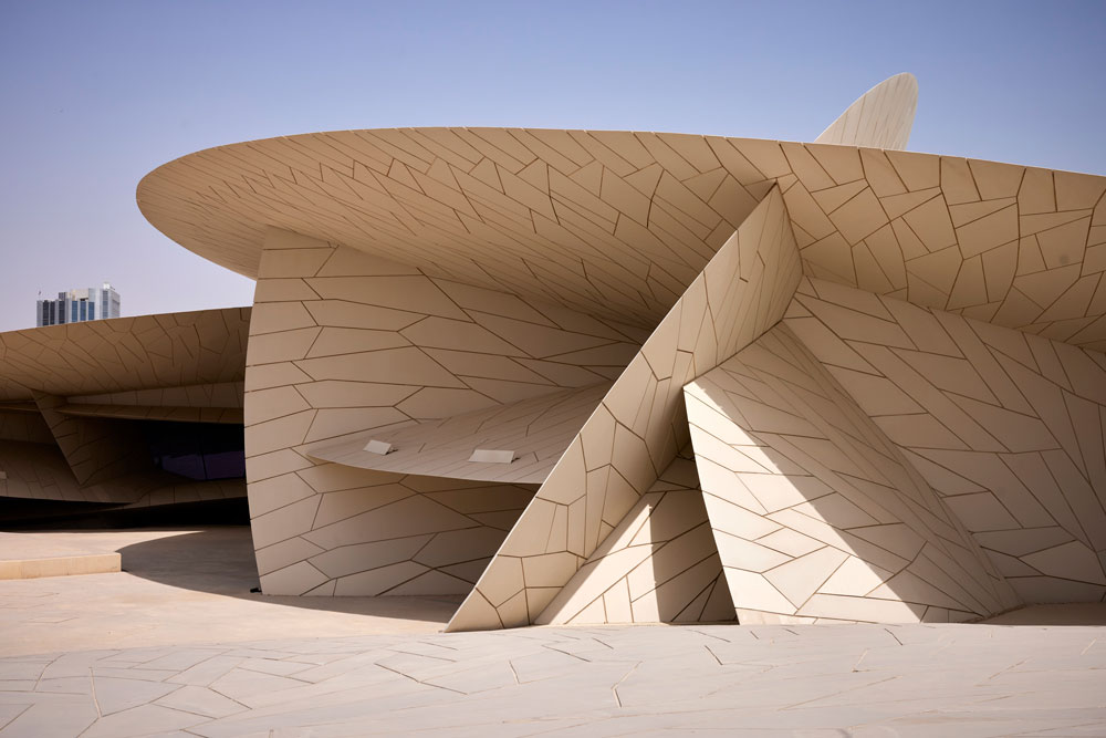 Last year, the National Museum of Qatar (NMoQ) celebrated its 50th anniversary. It has always been eye-catching. Built around the old Royal Palace, the museum won the Aga Khan Award for Architecture in 1980, setting a precedent for award-winning Qatari architectural projects. Of course, this is not the building that visitors see today. In 2015 work began on transforming the NMoQ to a new design by the French architect Jean Nouvel. His initial plan placed most of the museum underground, but this was scrapped in favour of the more striking building that now exists. Based on the structure of a ‘desert rose’, the intricate crystal formation of gypsum that naturally occurs in deserts, the museum is one of the most recognisable buildings in Doha.