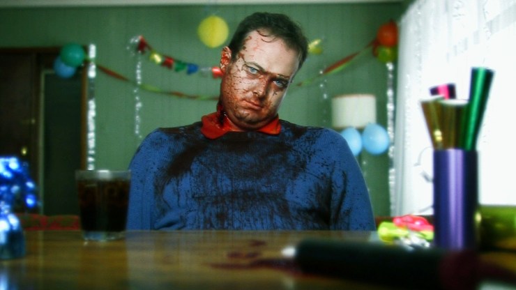 Set over New Year’s Eve into New Year’s Day, a mysterious signal that invades radio, TV, and cell phone transmission turns anyone who hears it into rage-fueled killers. What makes The Signal so much fun and special is that it’s one cohesive story with central characters, but it’s told in three parts by three difference directors. This gives it varying tones, from serious to black comedy, and an anthology feel despite not actually being an anthology. A.J. Bowen plays Lewis, the infected husband to lead character Mya (Anessa Ramsey), who spends most of the film chasing her down as she attempts to escape him with her lover Ben (Justin Welborn).
