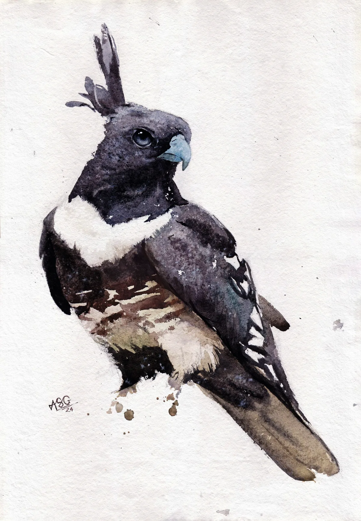 JUDGES’ COMMENTS: “The black baza, a striking raptor from southern India, is both elusive and ecologically significant. In his delicate watercolour, Aniruddha celebrates the species, working with handmade paper and embracing the unpredictable qualities of the medium.”