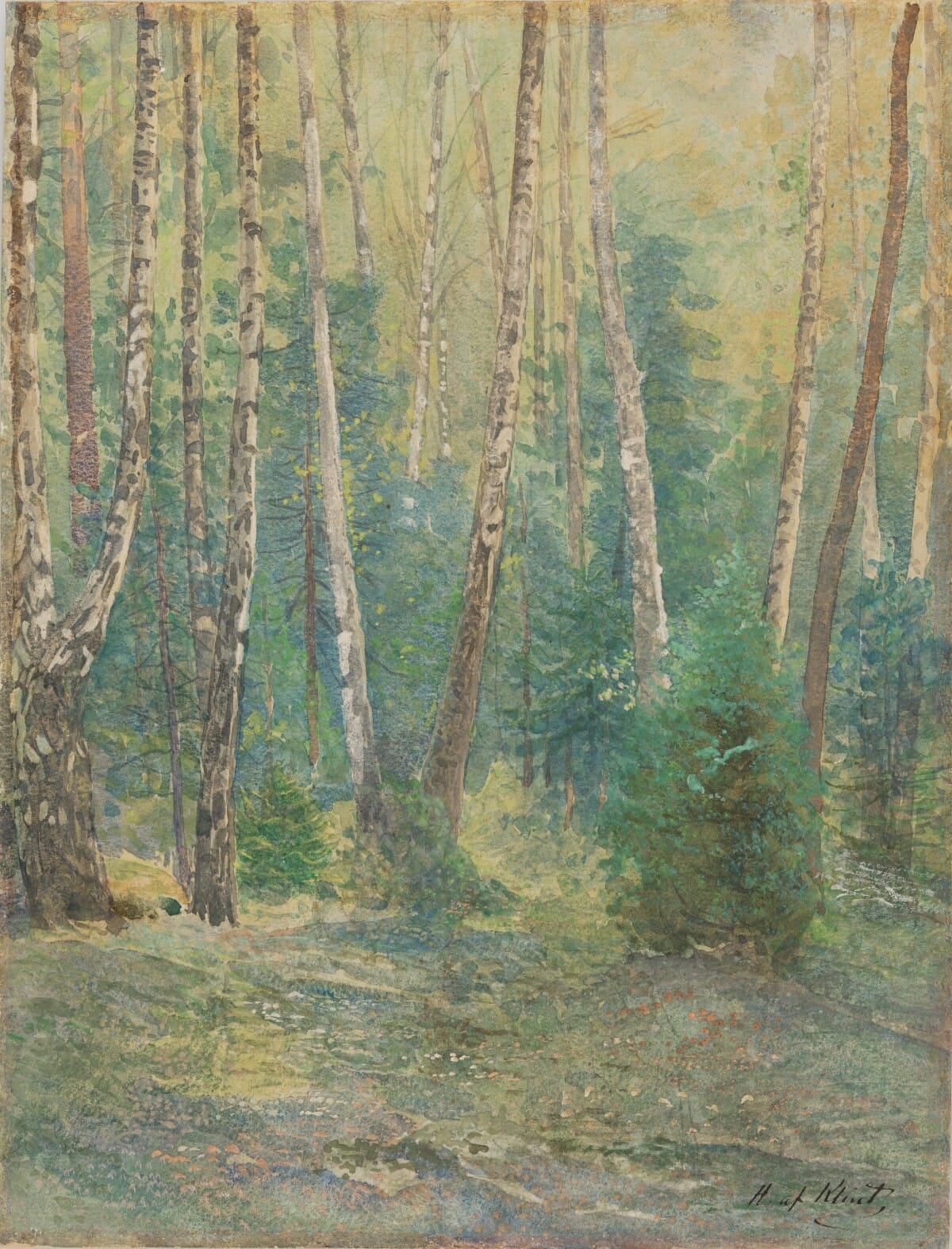 The Getty Museum — A Hilma af Klint Watercolor LandscapeHilma af Klint, “A Sunlit Grove of Birch and Pine Trees” (c. 1903) (image courtesy Getty Museum)