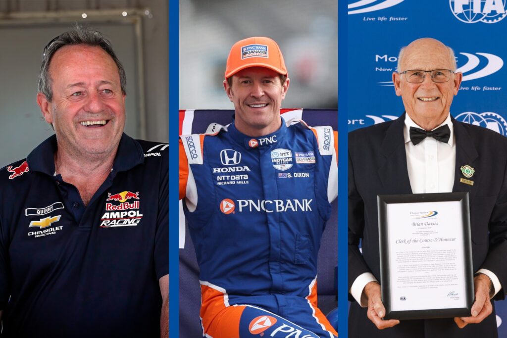“Sir Scott Dixon represents the very pinnacle of international success and inspiration. Tony Quinn’s vision and investment have shaped pathways and opportunities for countless competitors, and Brian Davies exemplifies the dedication and professionalism of our officials, who are the backbone of the sport.”