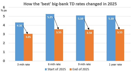 Most savers using term deposits choose the less than one year terms, and those have faced the sharpest pullbacks. The end of 2025 may have seen rates rise, but they were at the longer and unfavoured end of the maturity profile. In the zone where savers are comfortable, the falls have been notable.