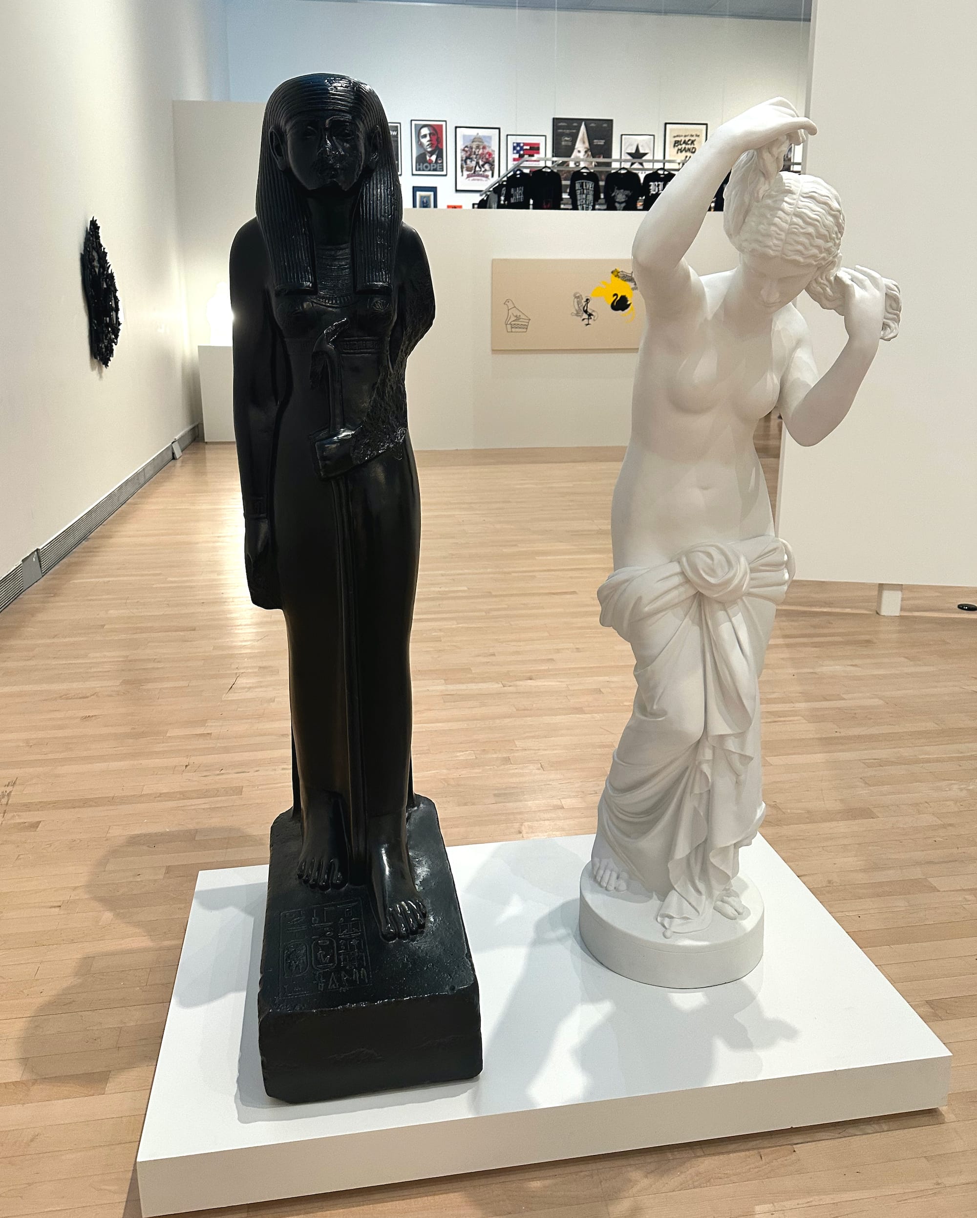 Fred Wilson, “The Mete of the Muse” (2006), bronze with black patina and bronze with white paint, cast 5 of 5, Edition of 5 + 2 APs (photo Chenoa Baker/Hyperallergic)