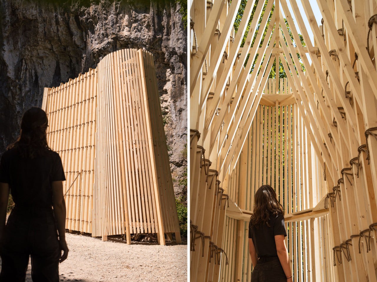 We’ve seen a lot of temporary pavilions lately (especially at the Osaka Expo) that lean hard on parametric design or CNC fabrication to justify their existence. La Barca goes the opposite direction with traditional joinery and basic lumber, but it lands harder because the concept is so committed. An upturned boat. In the mountains. Blocking a hiking path. It’s absurd enough to stop you in your tracks, familiar enough to feel approachable, and strange enough that you’re still thinking about it three switchbacks later.