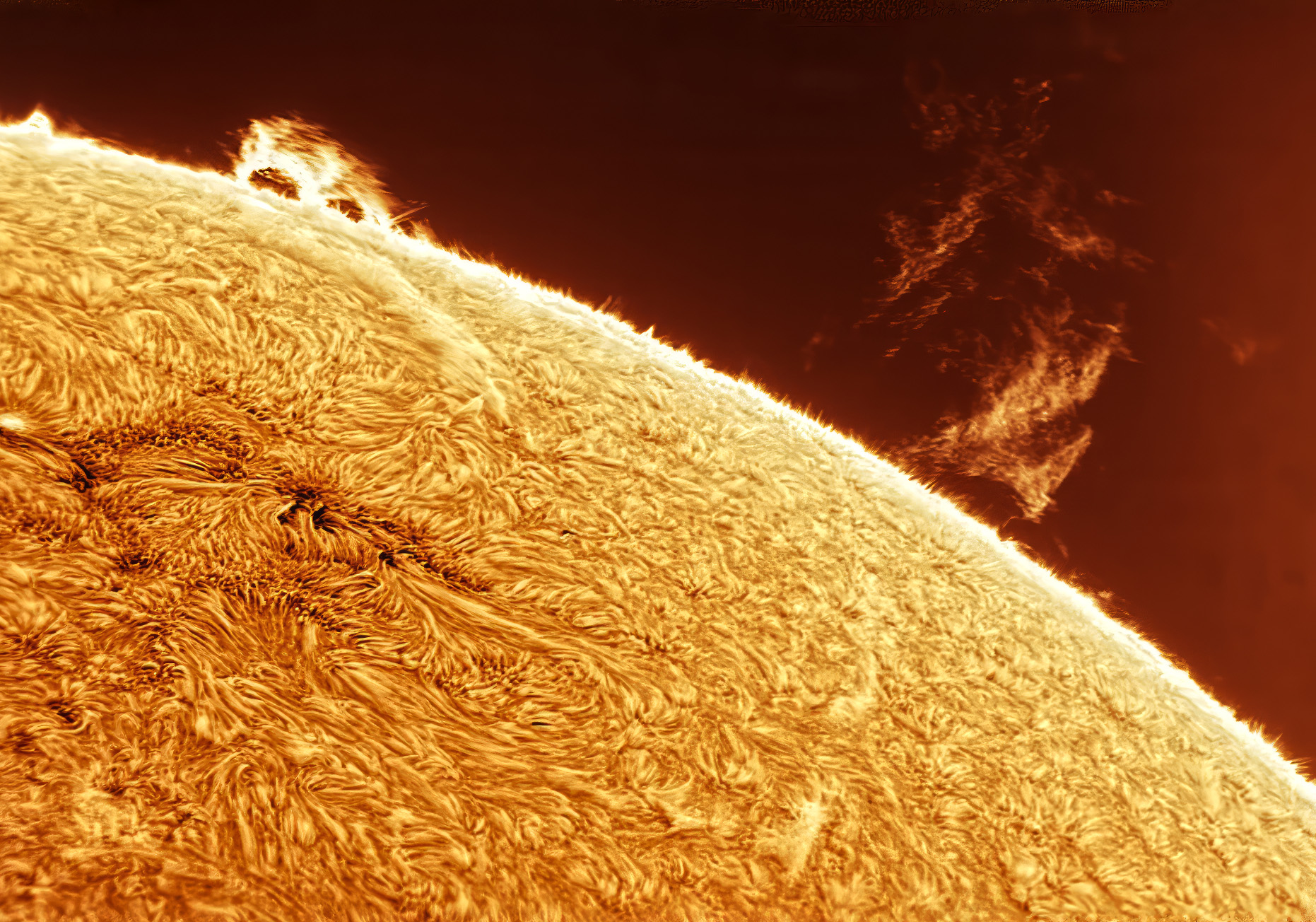 The Sun’s dynamic magnetic field causes ionized hydrogen to leap off the star’s edge, or limb, forming dramatic arcs visible at Hα wavelengths. Credit: Mark Johnston