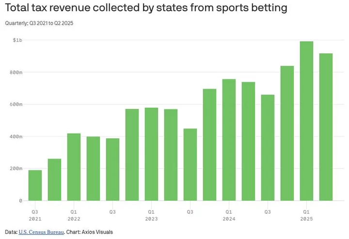 to the U.S. Census Bureau, sports betting tax revenue was near $200