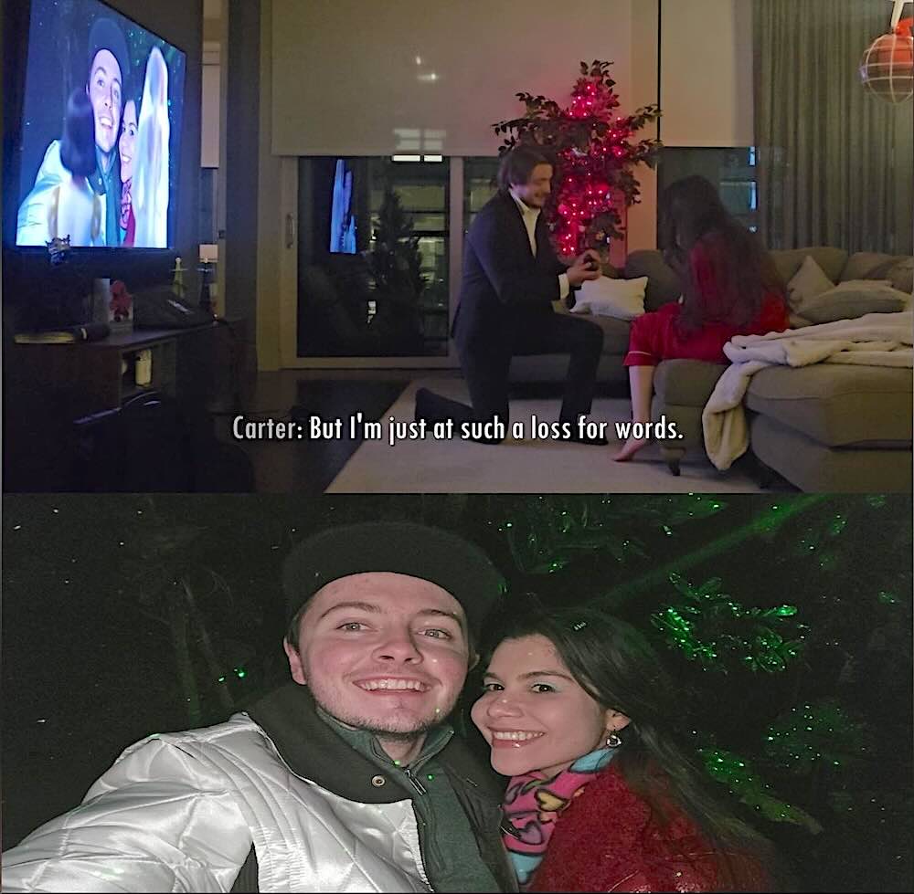 While playing the edited film for her at home last month, he left the room during that scene. He reappeared wearing the same suit he was wearing in the movie and got down on one knee to propose to Andressa Da Silva.