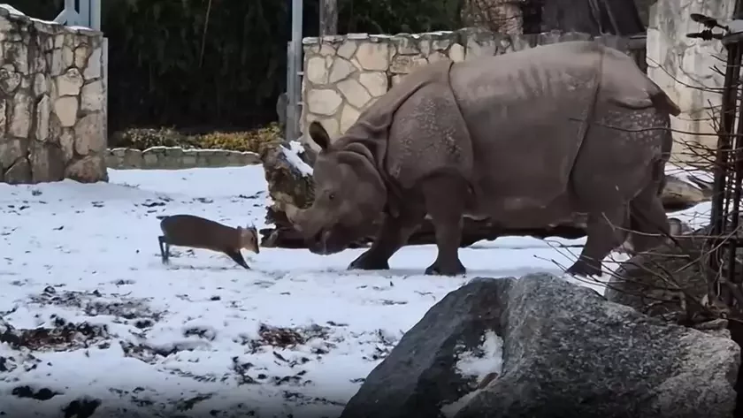 In the zoo of the Polish city of Wrocław, a male Chinese muntjac, a small deer weighing about 10-18 kg, unexpectedly boldly attacked a female rhino named Maruska, which weighs almost 100 times more – about 1.7 tons,