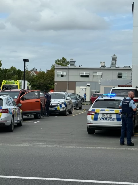A large police presence remains in Riccarton tonight following an assault on Riccarton Road.