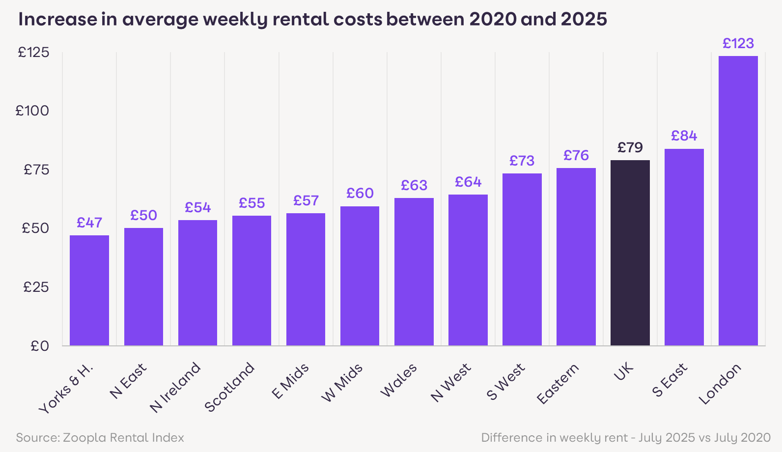 Table 2: Increase in average weekly rental costs between 2020 and 2025