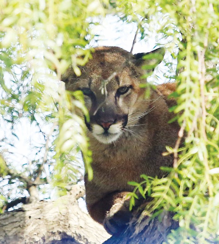 A mountain lion peers through the brush in Live Oak in this undated photo. (Tarmo Hannula/The Pajaronian)