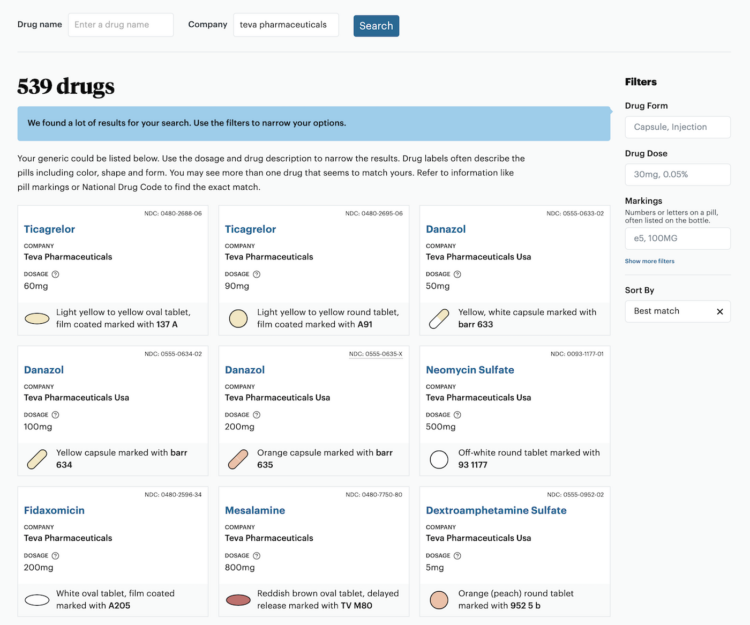 When generic drug manufacturers have issues like contamination, it is difficult for those who take the medications to know if they are affected. There is no standardized way to look up the data for where the pills in your bottle came from. ProPublica made an app that makes the lookup more straightforward.